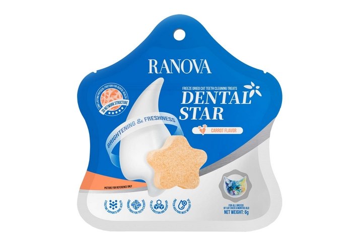 Ranova Лакомство Ранова для кошек сублимированное Звёздочка для зубов с Курицей и морковью 6 г