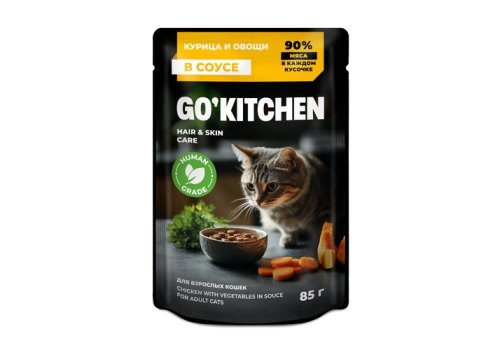 GO KITCHEN Консервированный корм Гоу Китчен для взрослых кошек курица и овощи в соусе (цена за упаковку) 85г х 12шт