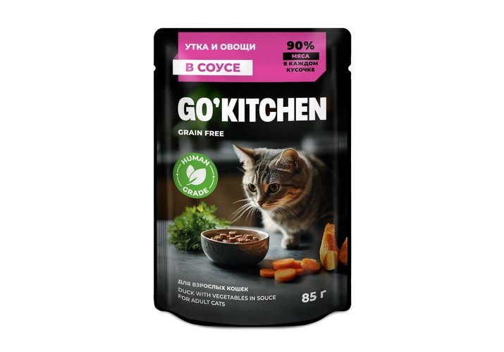 GO KITCHEN Консервированный корм Гоу Китчен для взрослых кошек с уткой и овощами в соусе (цена за упаковку) 85г х 12шт