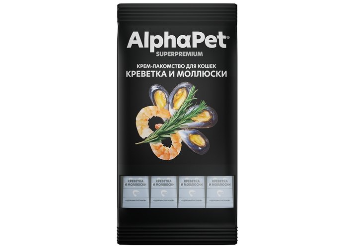 AlphaPet Superpremium Крем-лакомство АльфаПет для кошек с Креветкой и моллюсками 12г х 4шт