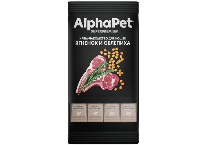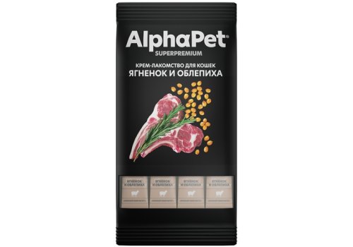 AlphaPet Superpremium Крем-лакомство АльфаПет для кошек с Ягненком и облепихой 12г х 4шт
