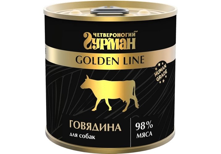 Четвероногий Гурман Golden Line Консервы Золотая линия для собак Говядина натуральная в желе (цена за упаковку) 240г х 6шт