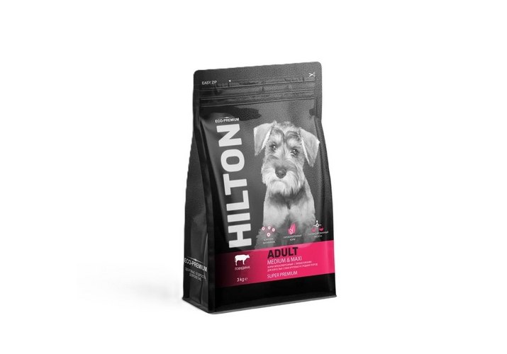 Hilton Сухой корм Хилтон для взрослых собак Средних и крупных пород Гипоаллергенный с пребиотиками с Говядиной 3 кг