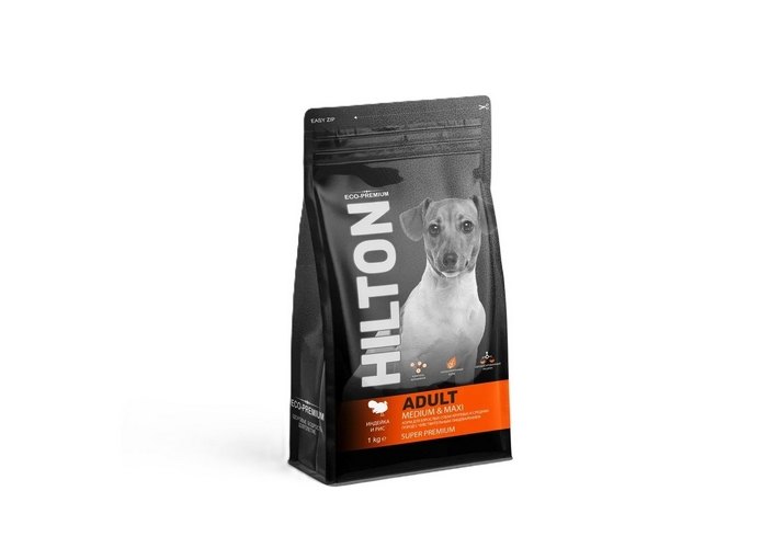 Hilton Сухой корм Хилтон для взрослых собак Крупных и средних пород с Чувствительным пищеварением Индейка и рис 1 кг