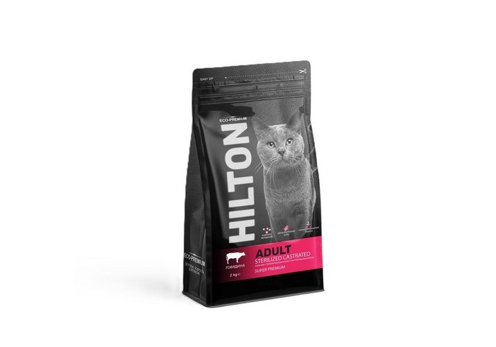 Hilton Сухой корм Хилтон для Стерилизованных кошек и Кастрированных котов с Говядиной 2 кг