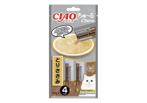 Inaba Ciao Churu Лакомство-пюре Инаба для кошек Здоровье почек Куриное филе 14г х 4шт