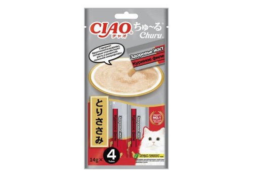 Inaba Ciao Churu Лакомство-пюре Инаба для кошек Здоровье ЖКТ Куриное филе 14г х 4шт