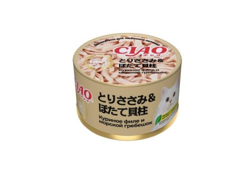 Inaba Cat Ciao Консервы Инаба для кошек Куриное филе с морским гребешком (цена за упаковку) 85г х 24шт
