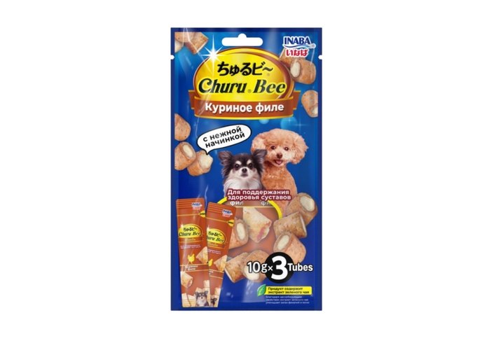 Inaba Churu Bee Лакомство Инаба для собак Запеченные трубочки Куриное филе для здоровья суставов 10 х 3шт