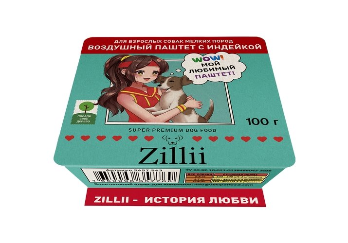 Zillii Влажный корм Зилли для взрослых собак мелких пород воздушный паштет с Индейкой (цена за упаковку) 100г х 15шт
