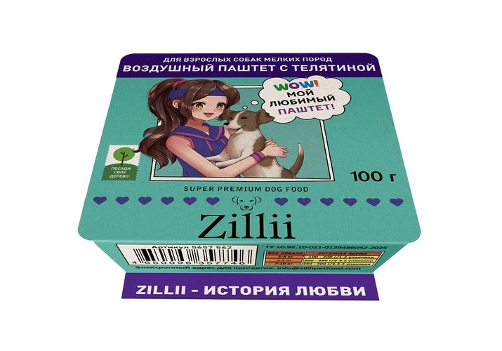 Zillii Влажный корм Зилли для взрослых собак мелких пород воздушный паштет с Телятиной (цена за упаковку) 100г х 15шт