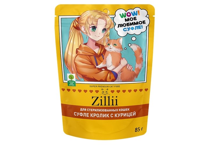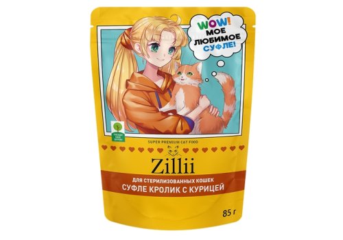 Zillii Влажный корм Зилли для взрослых Стерилизованных кошек суфле из Кролика и курицы (цена за упаковку) 85г х 24шт