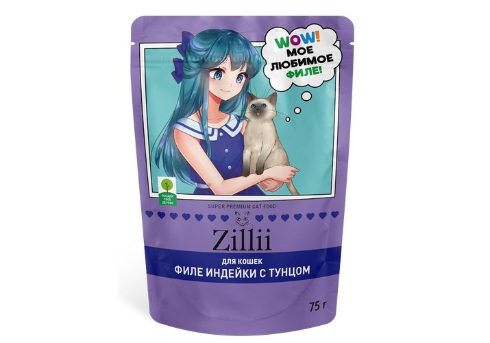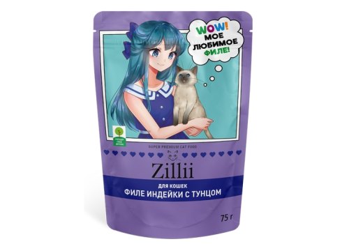 Zillii Влажный корм Зилли для взрослых кошек с Индейкой и тунцом в желе (цена за упаковку) 75г х 12шт