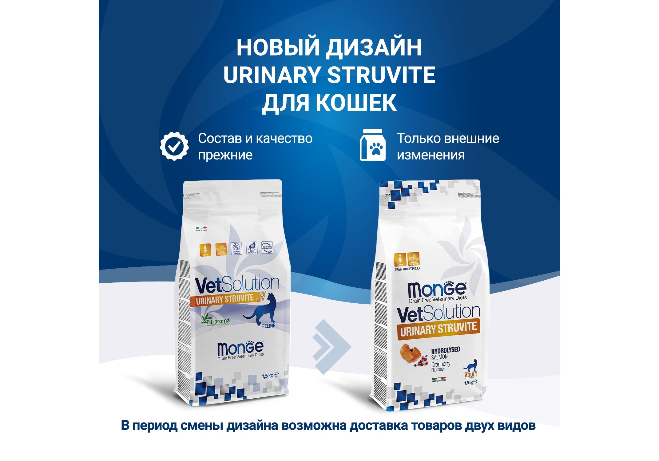 Monge VetSolution Urinary Struvite Ветеринарная диета Монж Уринари Струвит для кошек при заболеваниях мочеполовой системы и струвитном течении МКБ 1,5кг