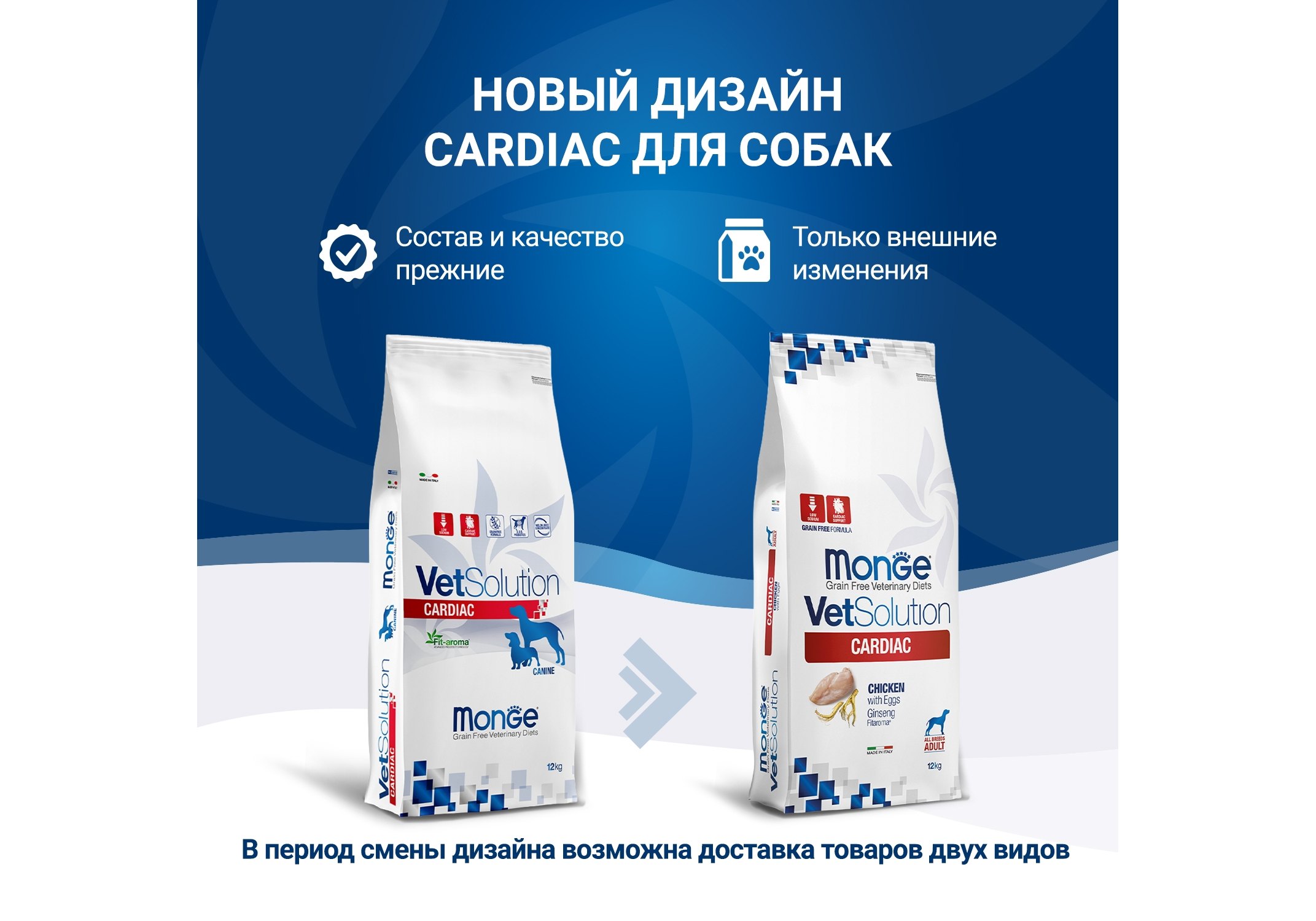 Ветеринарная диета Monge (Монж/Монже) VetSolution Cardiac разработана для собак с целью поддержки функций сердца через питание. Содержит супероксиддисмутазу - для предотвращения оксидативного стресса, ксилоолигосахариды – для контроля кишечной миклофлоры, и функциональную систему Fit-aroma - для создания специального подхода к лечению сердечной недостаточности.Состав: Дегидрированное мясо курицы, тапиока, животный жир (куриный жир)*, картофель, гидролизованный белок лосося, сухое яйцо, дегидрированная морковь, сушеный горох, клетчатка гороха, рыбий жир (лососевый жир)*, дегидрированная рыба (анчоус), порошок рожкового дерева, пивные дрожжи, сухая свекольная пульпа, дегидрированное мясо утки, ксилоолигосахариды (XOS 0,4%), минеральные вещества, продукты переработки трав (женьшень) 0,01%, продукты и субпродукты обработки свежих фруктов и овощей (концентрат сока дыни (Cucumis melo cantalupensis) источник супероксиддисмутазы 0,005%), сухой молочный белок.