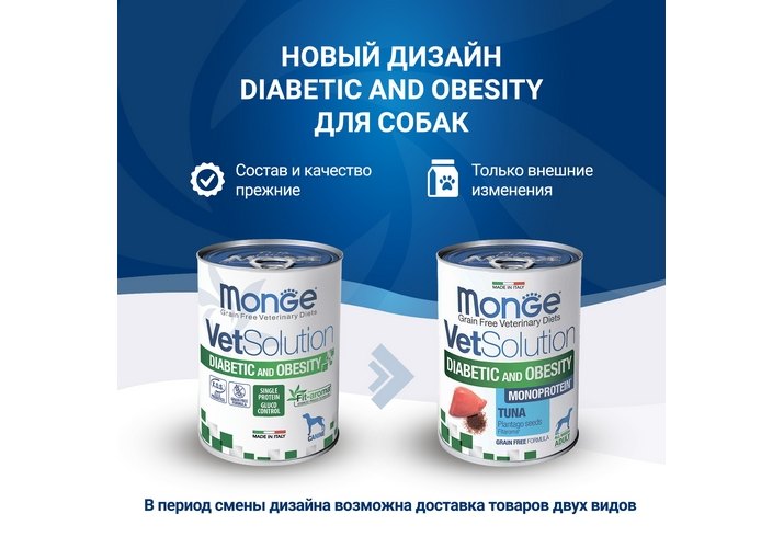 Monge VetSolution Diabetic and Obesity Ветеринарная диета Монж Диабетик и Обесити для собак при Сахарном диабете и лишнем весе (цена за упаковку) 400г х 12шт