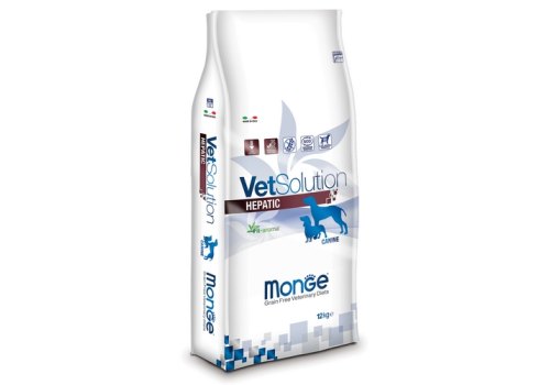 Monge (Монж/Монже) VetSolution Hepatic — полнорационный сухой диетический корм для собак «HEPATIC» для поддержания функции печени у собак при хронической печеночной недостаточности и снижения накопления меди в печени. Содержит концентрат сока дыни для нейтрализации свободных радикалов. Fit-aroma: семена расторопши для поддержки печени, ксилоолигосахариды (XOS) для защиты микробиоты кишечника. Формула характеризуется умеренным уровнем отборного высококачественного белка и пониженным уровнем меди.Состав: Дегидрированный горох (28%)**, тапиока, картофель, животный жир (куриный жир), дегидрированная рыба (тунец 6%)**, животный жир (таловый жир)*, дегидрированное мясо курицы**, минеральные вещества, рыбий жир (лососевый жир)*, клетчатка гороха, пивные дрожжи, сухая свекольная пульпа, ксилоолигосахариды (XOS 0,4%), юкка шидигера, семена расторопши (0,02%), продукты и субпродукты обработки свежих фруктов и овощей (концентрат сока дыни (Cucumis melo cantalupensis) источник супероксиддисмутазы 0,005%), сухой молочный белок. *очищенный на 99,6%, консервированный с помощью натуральных антиоксидантов. **источники белка.