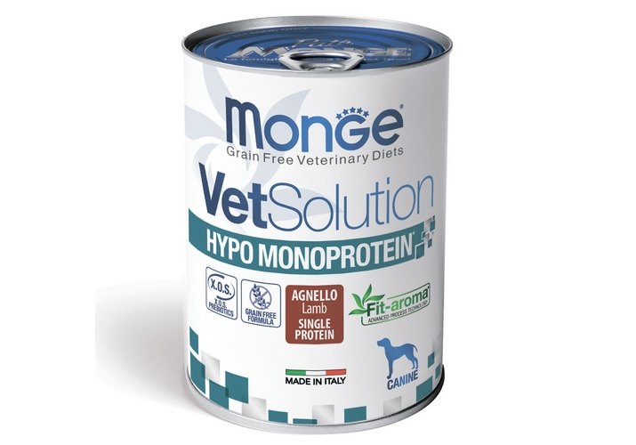 Monge VetSolution Hypo Monoprotein Lamb Ветеринарная диета Монж Гипо монопротеин для собак для Снижения реакции пищевой непереносимости с Ягнёнком (цена за упаковку) 400г х 12шт