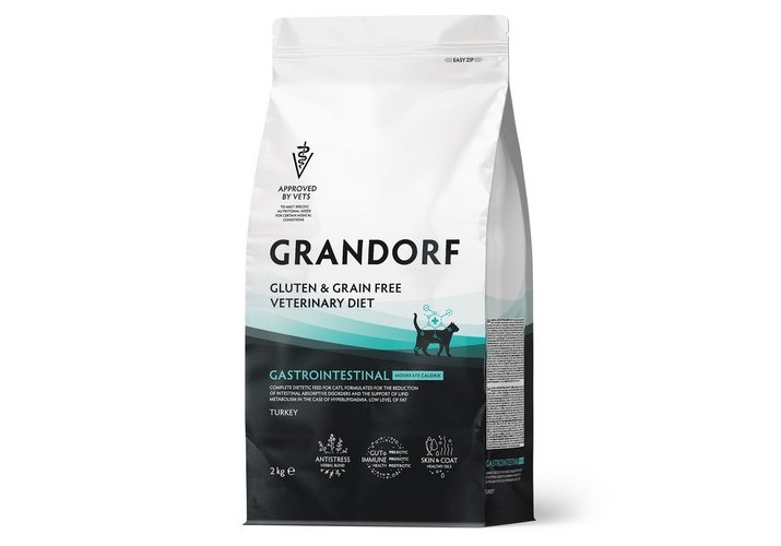 Grandorf Veterinary Diet Gastrointestinal Moderate Calorie Полнорационный диетический корм Грандорф для кошек склонных к набору веса при Расстройствах пищеварения (GRANDORF VETERINARY DIET GASTROINTESTINAL MODERATE CALORIE) 400 г 2 кг