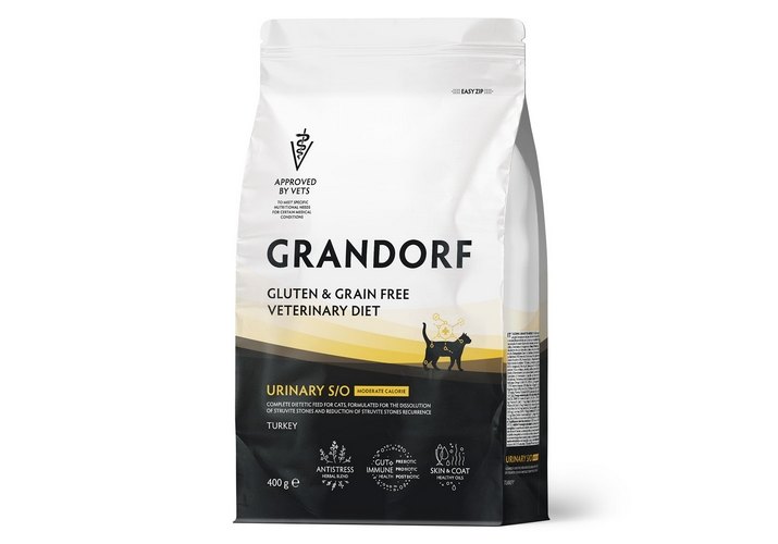 Grandorf Veterinary Diet Urinary S\O Moderate Calorie Полнорационный диетический корм Грандрф для кошек склонных к набору веса при Мочекаменной болезни 400 г