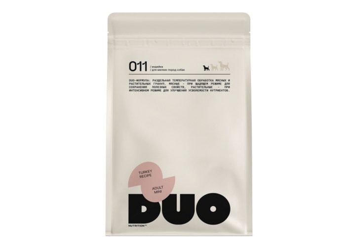 DUO Nutrition Сухой полнорационный корм Дуо Нутришин для взрослых собак мелких пород с Индейкой и рисом 1 кг