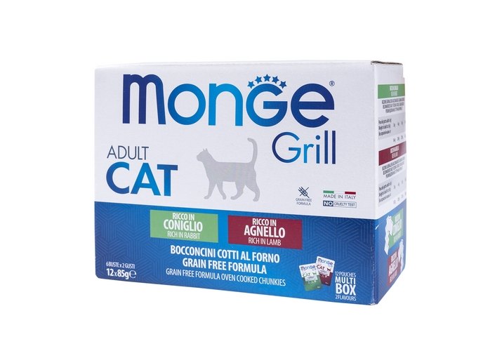 Monge Grill Mix Набор влажных кормов Монж для взрослых кошек Кролик Ягненок (цена за упаковку) 85г х 12шт