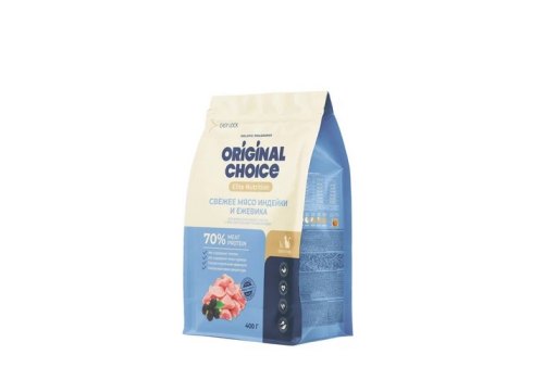 Original Choice Elite Nutrition Adult Sensitive Digestion Сухой корм Ориджинал Чойс для взрослых кошек с Чувствительным пищеварением свежее мясо Индейки и Ежевика 400 г