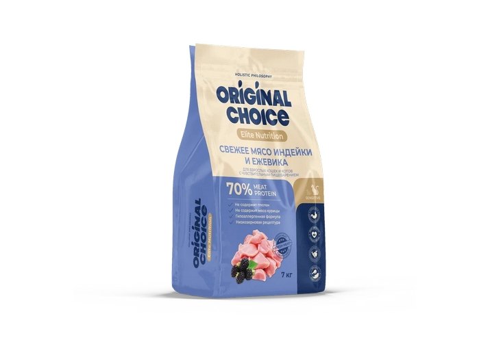 Original Choice Elite Nutrition Adult Sensitive Digestion Сухой корм Ориджинал Чойс для взрослых кошек с Чувствительным пищеварением свежее мясо Индейки и Ежевика 7 кг