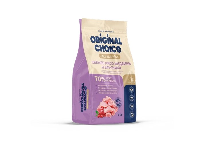 ORIGINAL CHOICE Elite Nutrition – это полнорационный корм, где свежее мясо и мясные ингредиенты стоят на первом месте в составе, где нет в составе пшеницы, глютена и курицы!