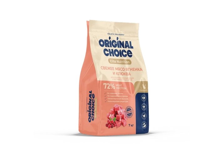 ORIGINAL CHOICE Elite Nutrition – это полнорационный корм, где свежее мясо и мясные ингредиенты стоят на первом месте в составе, где нет в составе пшеницы, глютена и курицы!