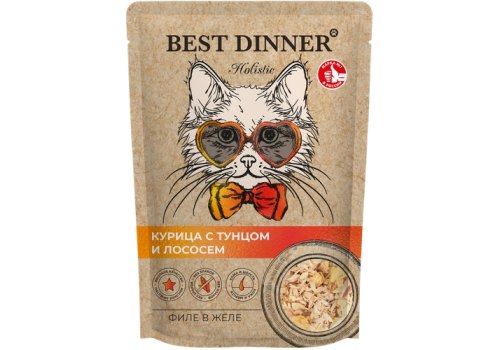 Best Dinner Holistic Паучи Бест Диннер для кошек Филе в желе Курица с тунцом и лососем (цена за упаковку) 70г х 12шт