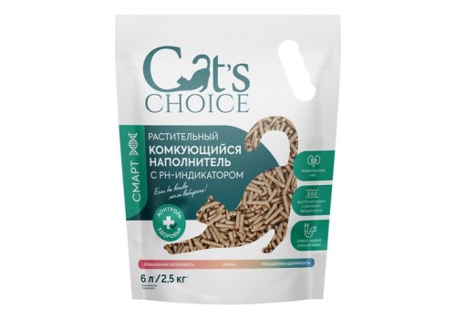 Инновационный растительный наполнитель Cat's choice из спресованных гороховых волокон с pH-индикатором. Наполнитель помогает отслеживать состояние здоровья кошки, быстро абсорбирует влагу и блокирует неприятный запах. Можно использовать на регулярной основе.
