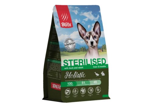 Blitz Holistic Sterilised Полнорационный сухой корм Блиц для стерилизованных кошек Утка и кролик 5 кг