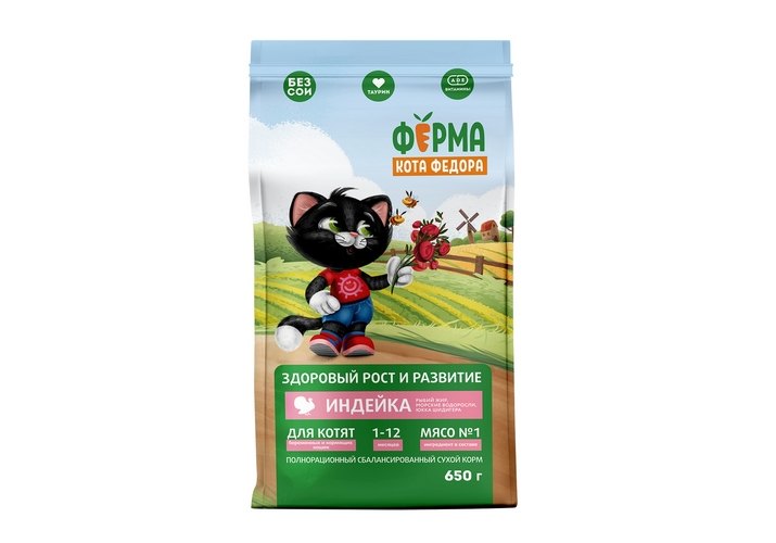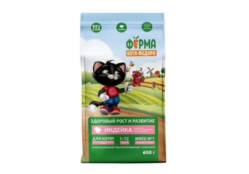 Ферма кота Фёдора Сухой корм для котят от 1 месяца, беременных и кормящих кошек с Индейкой 650 г