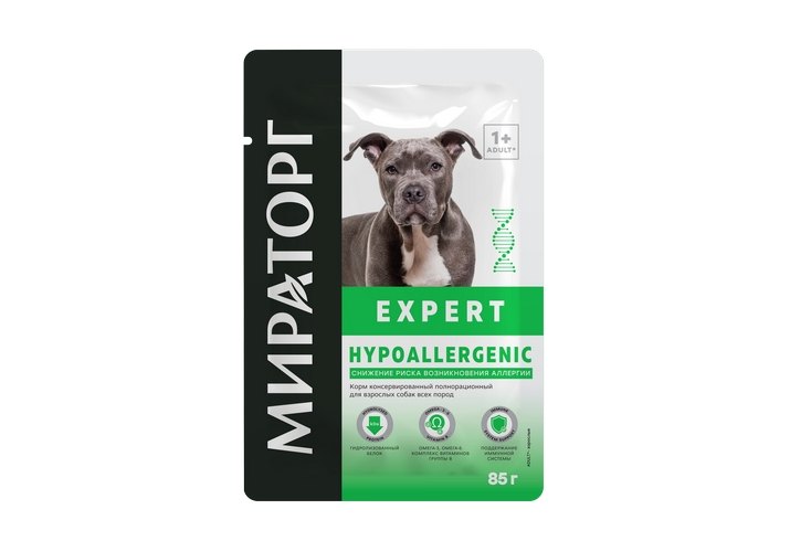 Мираторг Expert Hypoallergenic Влажный корм Паучи для взрослых собак всех пород Снижение риска возникновения аллергии (цена за упаковку) 85г х 24шт