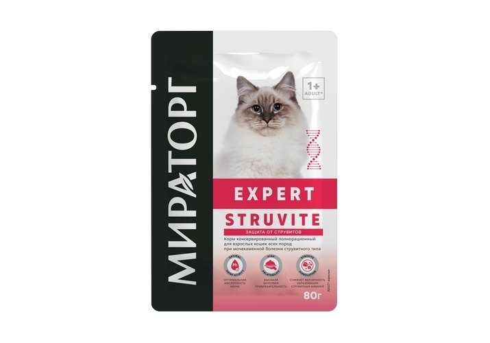 Мираторг Expert Struvite Влажный корм Паучи для взрослых кошек всех пород при МКБ струвитного типа (цена за упаковку) 85г х 24шт