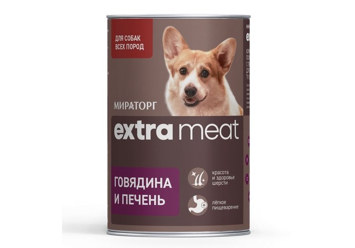 Мираторг Extra Meat Корм консервированный для взрослых собак всех пород с Говядиной и печенью в желе (цена за упаковку) 425г х 9шт