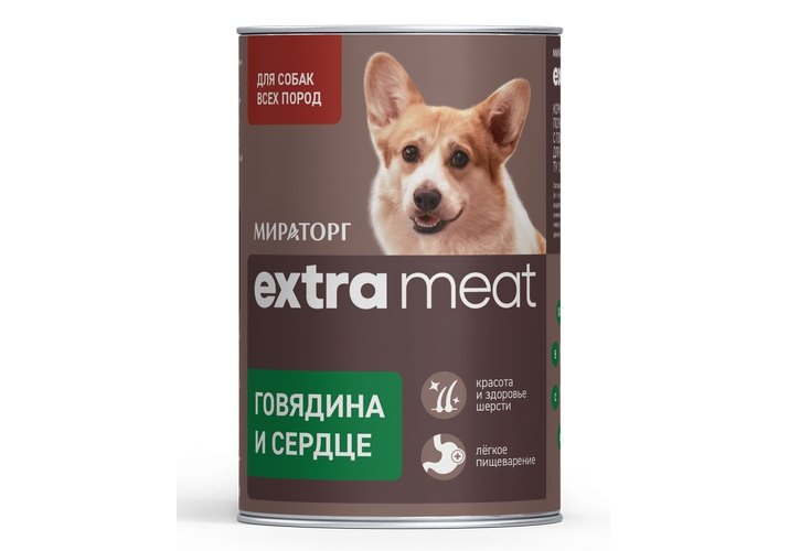 Мираторг Extra Meat Корм консервированный для взрослых собак всех пород с Говядиной и сердцем в желе (цена за упаковку) 425г х 9шт
