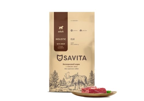 Savita Adult Dogs Elk Сухой Беззерновой корм Савита для взрослых собак с Мясом Лося 1кг