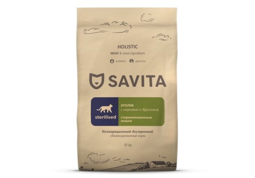 Savita Sterilized Cats Rabbit Сухой Беззерновой корм Савита для Стерилизованных кошек с Кроликом 10кг