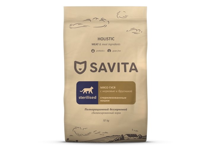 Savita Sterilized Goose Сухой Беззерновой корм Савита для Стерилизованных кошек с мясом Гуся 10кг