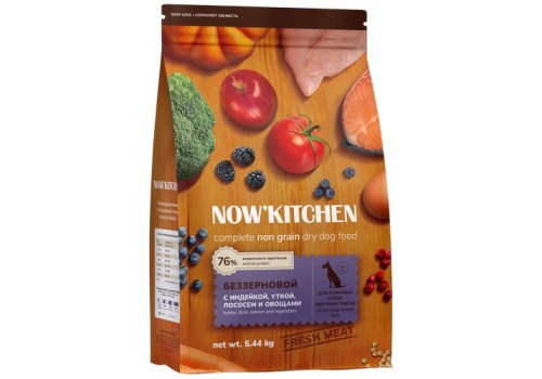 NOW KITCHEN Senior Fresh Grain-free Turkey Duck&Salmon Сухой Беззерновой корм Нау Китчен для взрослых собак Крупных пород старше 7 лет Индейка Утка Лосось и овощи 5,44 кг