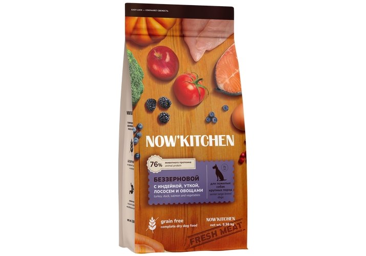 NOW KITCHEN Senior Fresh Grain-free Turkey Duck&Salmon Сухой Беззерновой корм Нау Китчен для взрослых собак Крупных пород старше 7 лет Индейка Утка Лосось и овощи 9,98 кг