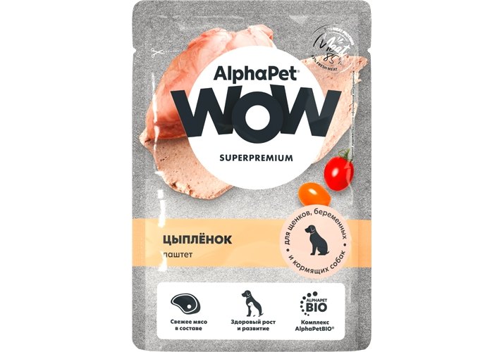 AlphaPet Wow Superpremium Влажный корм АльфаПет для щенков, беременных и кормящих собак Цыплёнок паштет (цена за упаковку) 85г х 28шт