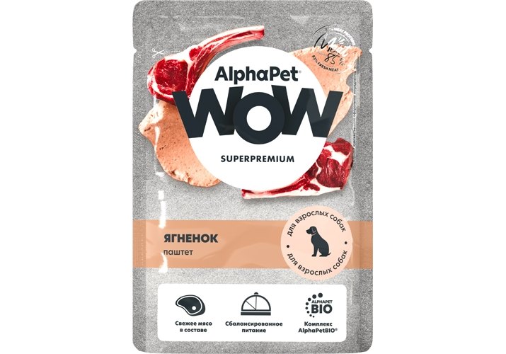 AlphaPet Wow Superpremium Влажный корм АльфаПет для взрослых собак Ягненок паштет (цена за упаковку) 85г х 28шт