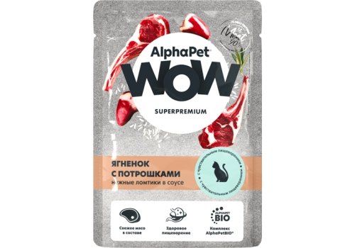 AlphaPet Wow Superpremium Влажный корм АльфаПет для кошек с чувствительным пищеварением нежные ломтики ягненка с потрошками в соусе (цена за упаковку) 85г х 28шт