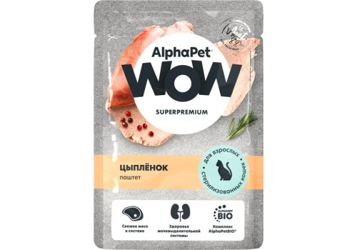 AlphaPet Wow Superpremium Влажный корм АльфаПет для взрослых стерилизованных кошек паштет с цыпленком (цена за упаковку) 85г х 28шт
