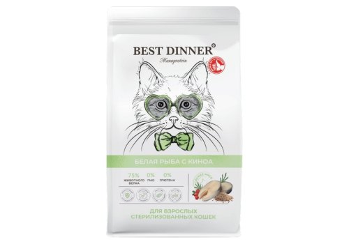 Best Dinner Monoprotein Sterilised Сухой корм Бест Диннер для Стерилизованных кошек Белая рыба с Киноа 7 кг