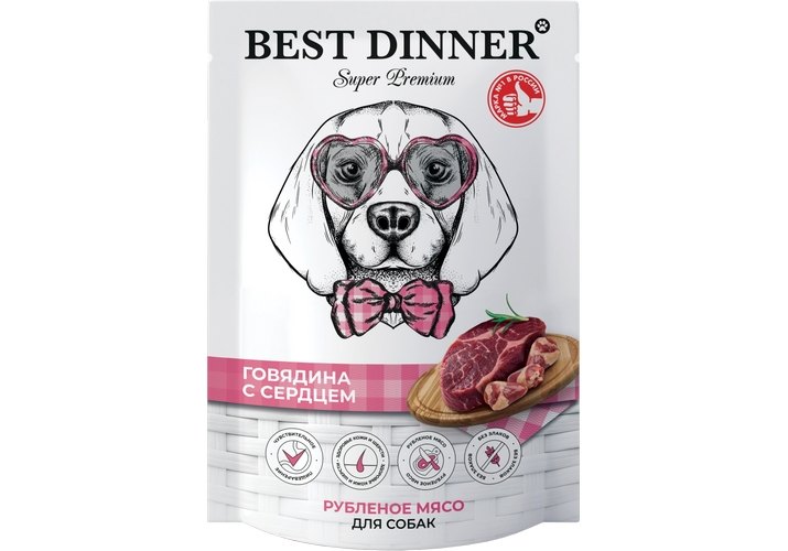 Best Dinner Super Premium Пауч Паучи Бест Диннер для собак всех возрастов Говядина с сердцем (цена за упаковку) 340г х 8шт