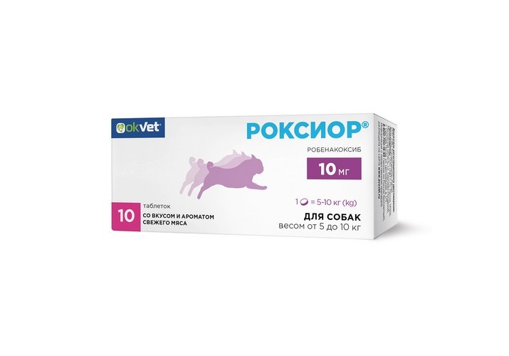 Okvet Таблетки Оквет РОКСИОР 10 мг для собак весом от 5 до 10 кг нестероидный противовоспалительный препарат со вкусом и ароматом свежего мяса 10 таб